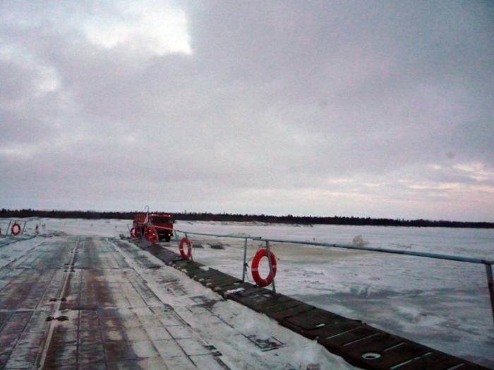 В Надыме пока закончил, рюкзак на плечо, еду в пгт Пангоды. До сих пор не знаю как правильно ставить ударение, ибо разночтения даже среди местных. Путь в оные края дремучие лежит через дорогу жизни, как я ее назвал, понтонный мост через реку Надым.