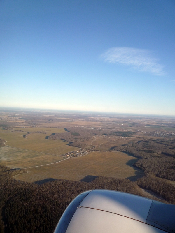 Три часа в воздухе и мы в солнечной бесснежной погоде. Подлетаем к Внуково