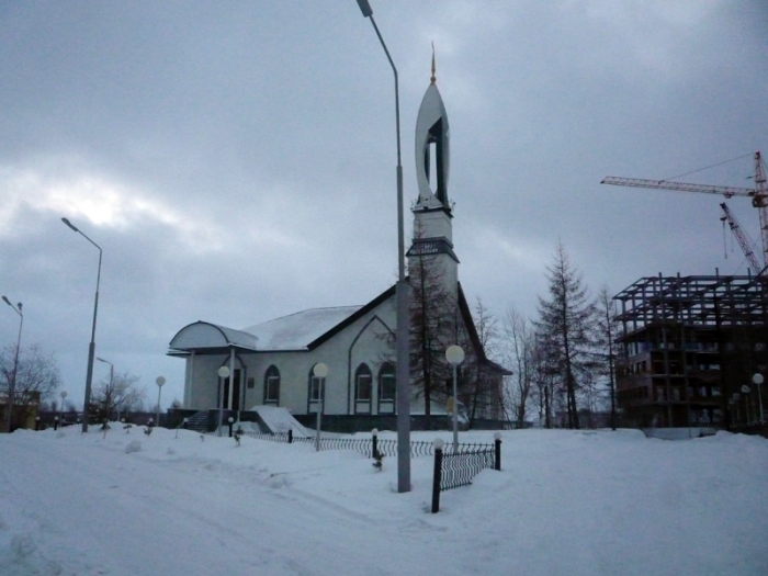 Сам Надым город молодой, появился в 70е годы прошлого века, комсомольско-зэковские стройки, северные надбавки и тыды. Маловат город, невысок, но несмотря на размеры есть мечеть, как углядел — сам не понял.
