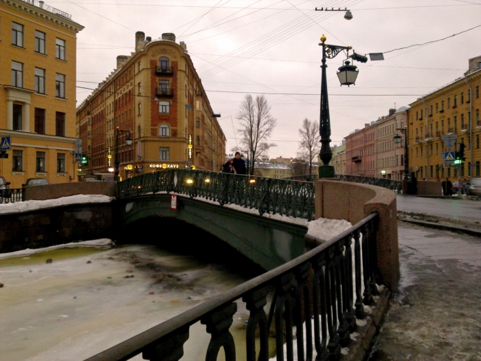 Мост через Мойку в створе улицы Глинки. 1807 — 1816 гг., инж. В.И. Гесте. Свое романтическое название мост получил от кабака «Поцелуй», располагавшегося здесь, в доме купца Поцелуева.