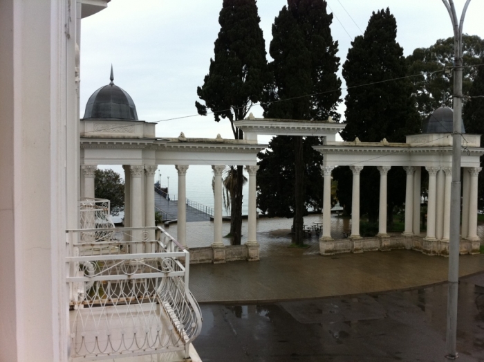 Потом за 1 тыс. руб. мы уломали нашего водителя отвезти нас в Сухум. Там мы остановились в центре. гостиница называется «Рица»))))(номер люкс стоит 2500, летом 3) Вот вид из окна)))