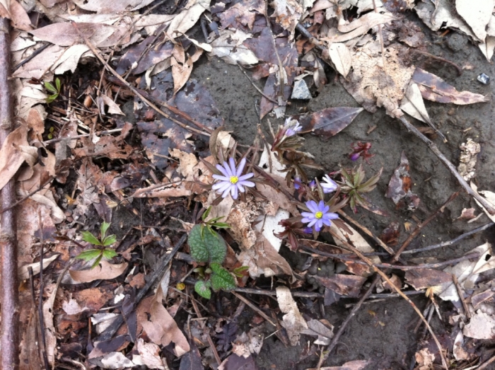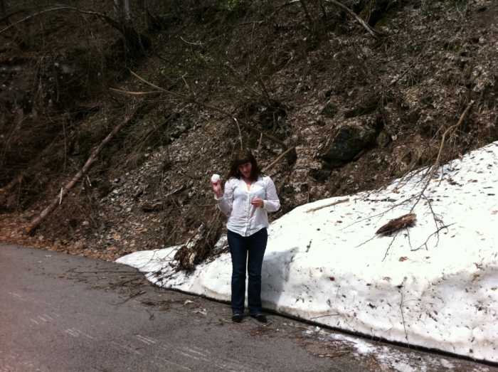 Кое-где лежит талый снег… поиграла в снежки.