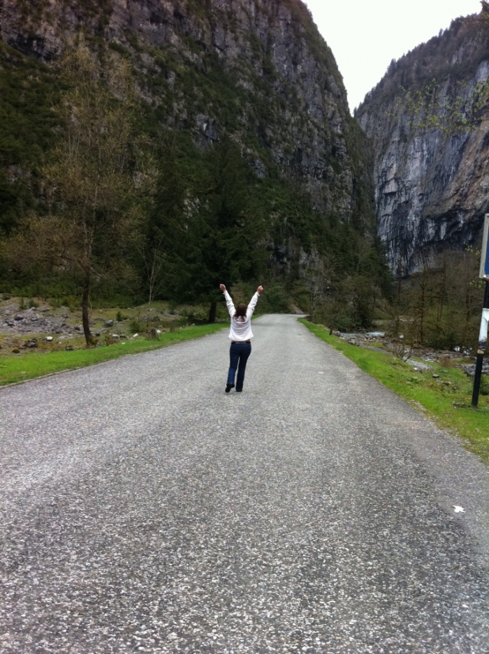 А дорога на Рицу под скалами в ущелье Юпшары…