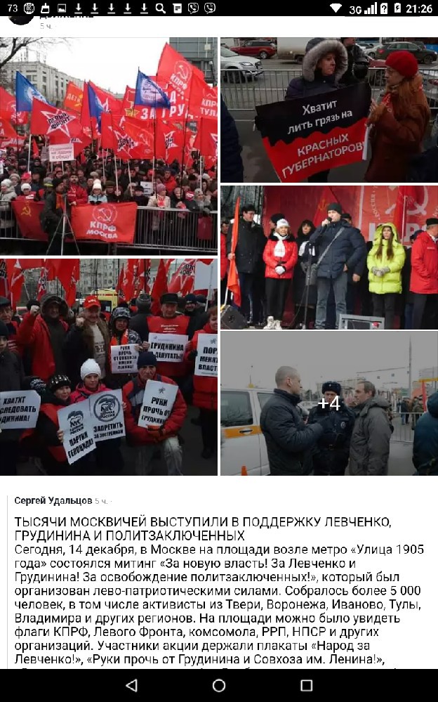 Сегодня, 14 декабря 2019 года, местные представители одной из самых многочисленных оппозиционных партий РФ — Сочинского отделения КПРФ, провели массовое пикетирование во всех четырёх районах города: Адлере, Хосте, Центральном и Лазаревском районах — в поддержку директора подмосковного совхоза имени В. И. Ленина — Павла Грудинина и «Красного» губернатора Иркутской области — Сергея Левченко.