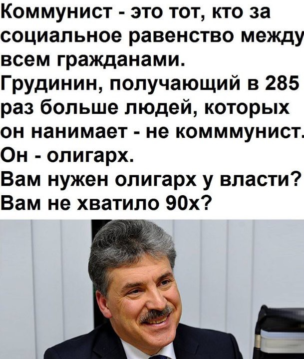 Я после развала СССР всегда за вашу партию голосовала, пока пару лет назад не поняла, что никакая это не партия рабочих и крестьян. А уж то, что ваш лидер творит, это вообще противно.
