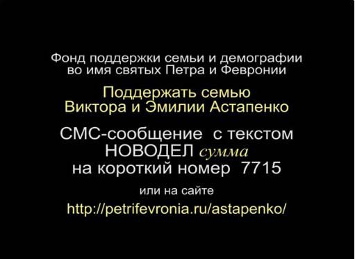 Протоиерей Димитрий Смирнов: «Здравствуйте, дорогие братья и сестры! Я хочу к вам обратиться по поводу нашего нового проекта, подобного тому, как мы устраивали с Катей Хохолковой. Сейчас вы посмотрите, если пожелаете, конечно, нашу передачу «Диалог под часами» с двумя людьми, Виктором и Эмилией, которые имеют восемь детей, но не имеют никакого жилья. И я думаю начать сбор средств для того, чтобы им купить квартиру. Они обращались во все возможные инстанции, им было отказано. Сама ситуация будет для вас понятна из самого текста нашего общения. Мне бы очень хотелось, чтобы все, кто нас смотрит и слышит, в том объёме, в котором возможно, поучаствовали в этом проекте. Это, я думаю, нас и объединяет вокруг Христа, и мы тем самым исполняем заповеди».