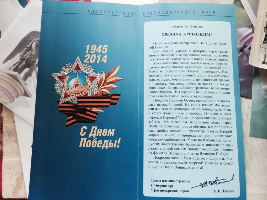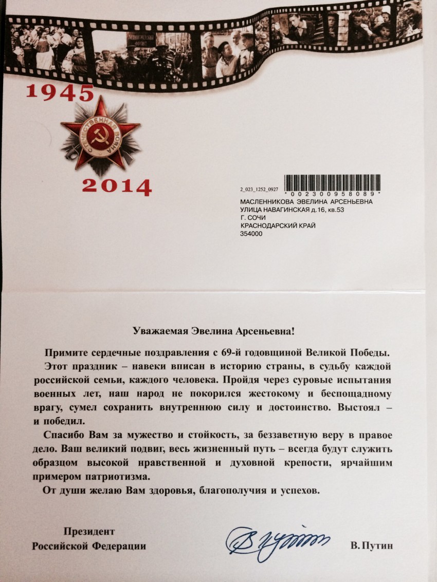 Но сначала хочу рассказать об Эвелине Арсентьевне Масленниковой. Прошла войну, имеет боевые награды, вырастила дочь, учитель географии по образованию, всю жизнь проработала экскурсоводом в нашем городе. Судьба сложилась так, что сейчас они живут вдвоём с дочерью (всю жизнь проработавшей учительницей физики в сочинских школах). Близких родственников — нет…