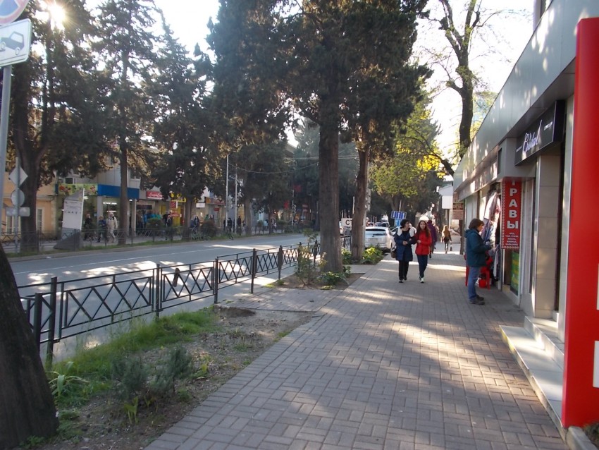 Перешли на другую сторону Московской, там, напротив Белого лебедя и некоторых ларьков стояли скамейки. Теперь их нет.