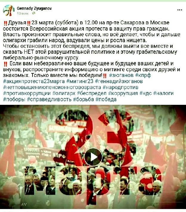 Информируем вас, что 23 марта состоится Всероссийская акция протеста под девизом «Защитим социально-экономических права граждан!».