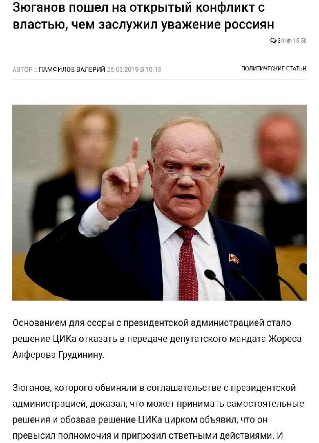 Многие граждане, далёкие от политики, мне часто высказывают претензии: «Почему ваш Зюганов не скажет Путину, что надо делать именно так, но вовсе не так, как делает Правительство?». Это наивные люди, чего не скажешь именно о вас. Вы заскорузлы в своём непонимании ситуации и ничем не обоснованном бонопартизме.