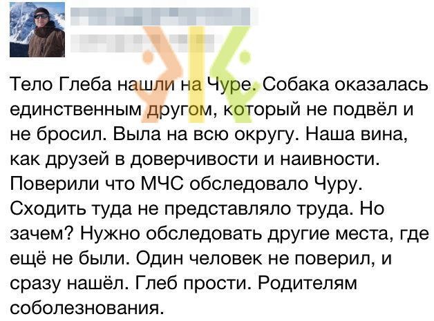 Многие задают вопрос, почему оставили г. Чура и отправились по другим направлениям. По информации родственников, он мог спуститься к Березовой. По информации друзей – в Медовеевку, а это совершенно разные направления движения. Последующие группы, которые вели поиск, старались максимально быстро обследовать другие возможные маршруты его передвижения, при этом, каждый раз проводился осмотр склонов г. Чура с борта вертолета. Спасатели (в первую очередь) искали ЖИВОГО человека, поэтому расширяли район поиска.