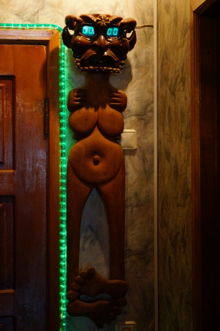 Эта поездка оставила очень приятный и познавательный остаток. В этой галерее выставлены фигуры из дерева пород: Сосна, бук, грецкий орех, каштан, липа, груша, дуб, ясень, клен. Почти сорок лет мастер декоративно-прикладного искусства Соболь Александр Александрович занимается резьбой по дереву, за это время появилось на свет около 500 композиций которые и выставлены в этой галерее. Экскурсовод провела нас по всем этажам, рассказала подробно о галерее и о экспанатах, после чего неожиданно предложила пообщаться с самим мастером в его кабинете, что мы собственно и сделали. В общем даже не ожидала я что будет настолько интересно и мне и моему мужу, очень впечатляюще…