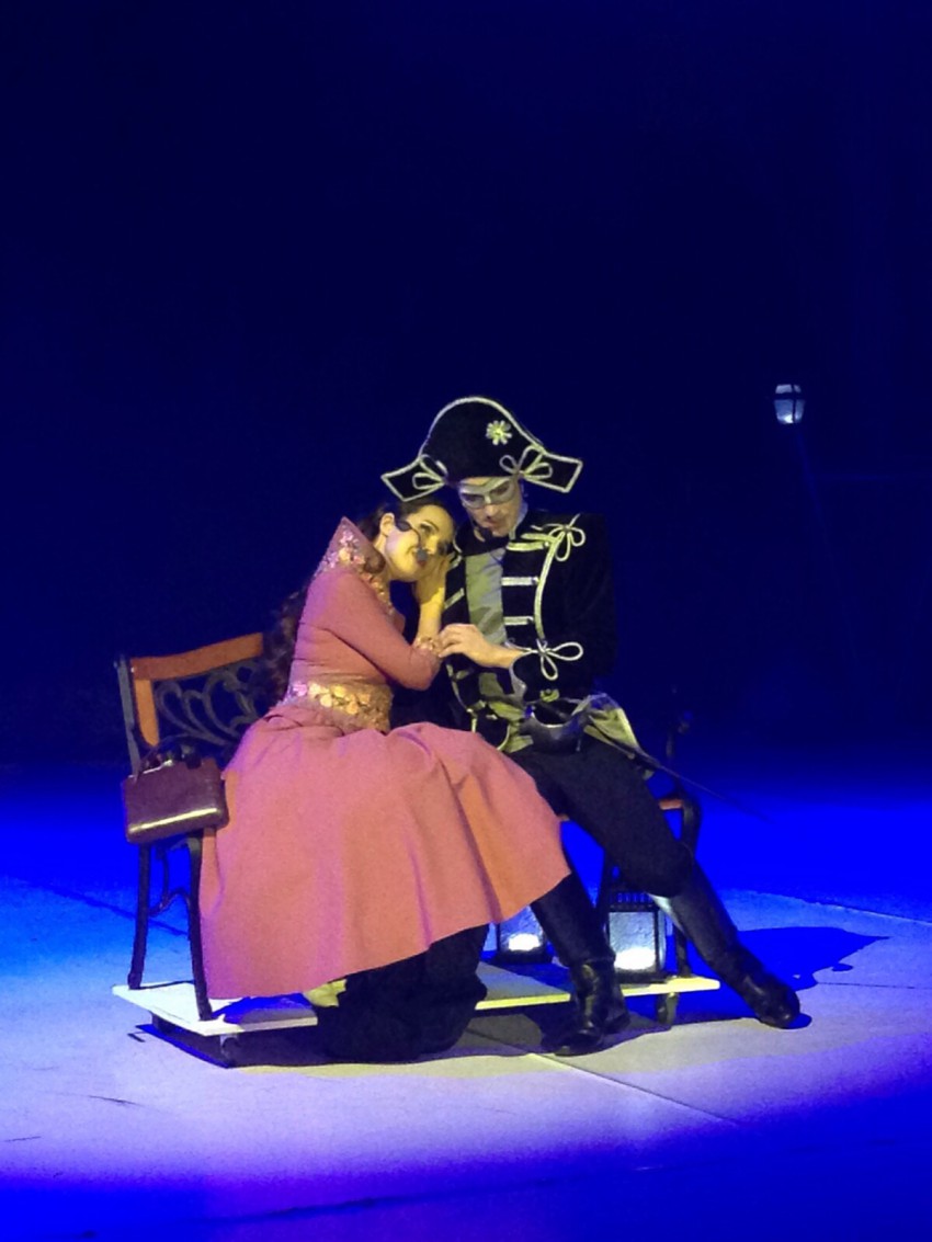 Во-вторых, само представление. Выше всяких похвал. Головокружительные трюки, потрясающее музыкальное сопровождение, костюмы… Погружаешься полностью в эту историю. Я искренне начала в конце переживать за героев, когда они с мышами-то сражались. С удивлением обнаружила, что и парень зажмурился, когда их окружили. Вот такая магия!