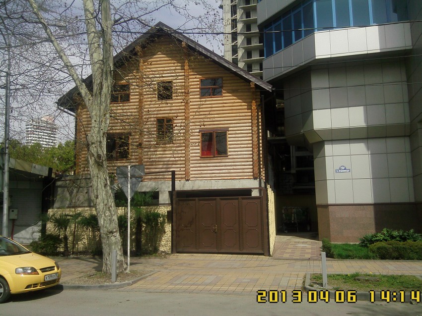 Сруб построен во дворе частной территорией, а вот стеклобетонное здание вылазеет на эту часную территорию… на первой основной фотографии всё отчётливо видно!!!