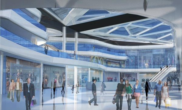 В двухэтажном комплексе будут располагаться торговая галерея, продуктовый супермаркет, гипермаркет электроники и бытовой техники, развлекательная зона, многозальный кинотеатр и паркинг на 3500 машиномест.