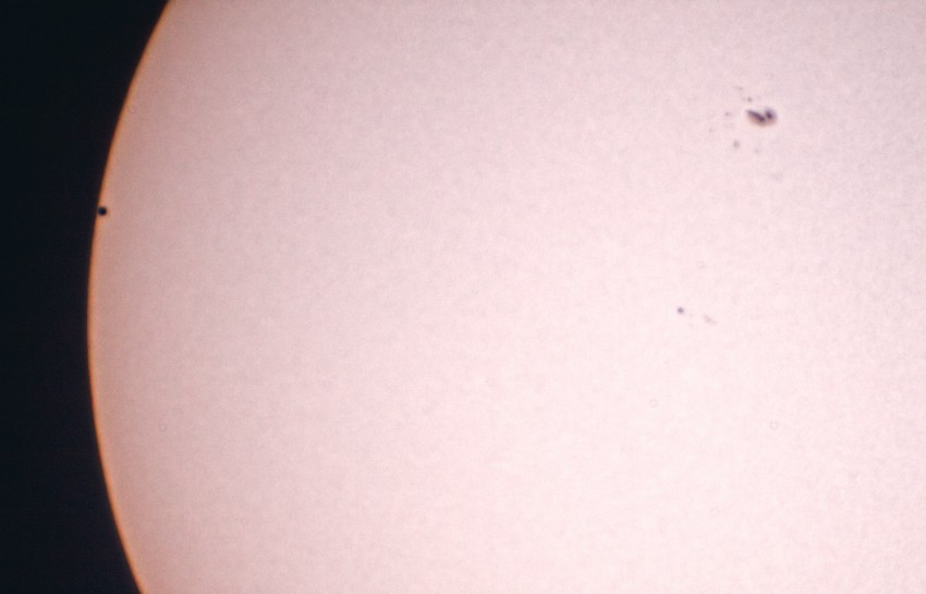 Мне удалось сделать фотографию транзита Меркурия десять лет назад, 8 ноября 2006 года. Правда в более примитивных условиях: труба «Турист 3» на штативе, лист белой бумаги как солнечный экран и пленочный фотоаппарат «Зенит».