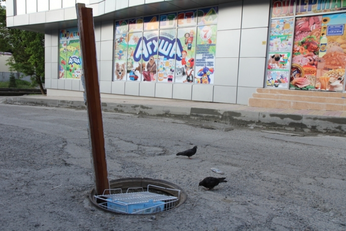 Люк, помеченный стрелкой, сильно грохочет при наезде на него.Задолбал ужасно.Ночью грохот стоит от него на всю округу