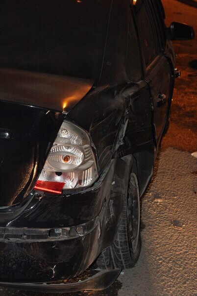 Авария произошла пару часов назад, в кратце: Форд летел со стороны «Автороста» подлетел на подъеме, после заезда на инфекционку, его занесло — вылетел на встречку и в лоб, правой стороной в заносе, влетел в Субару. Пассажиры и водители живы, пассажир Форда принял на себя удар, сильно пострадал, сразу увезли на скорой! есть много фото, завтра всё выложу, пока одну добавлю, поздно уже комп включать…