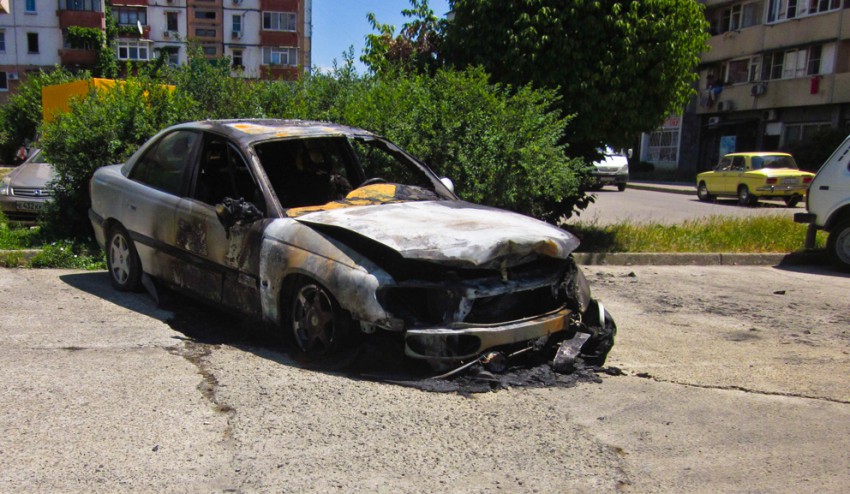 Сегодня около 23.00 загорелась машина, сначала был слышен громкий хлопок потом выглянули в окно, а там машина начинает гореть!