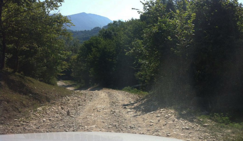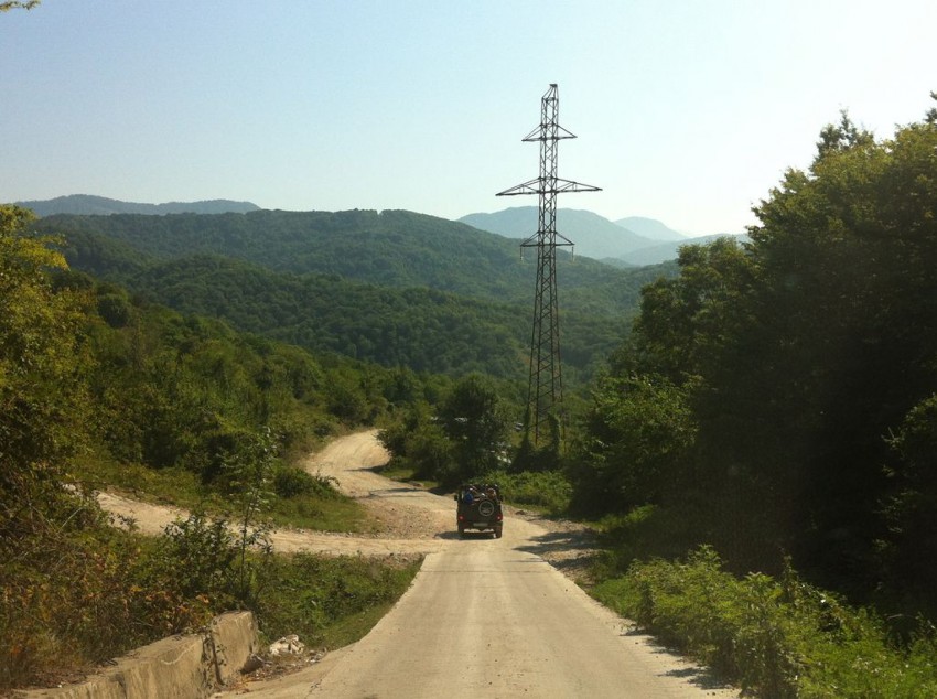 выезжаем на асфальт и направо, под ЛЭПом приедете в деревню Галицино, и налево вниз по бетонке спуск на трассу «Адлер-Красная Поляна»