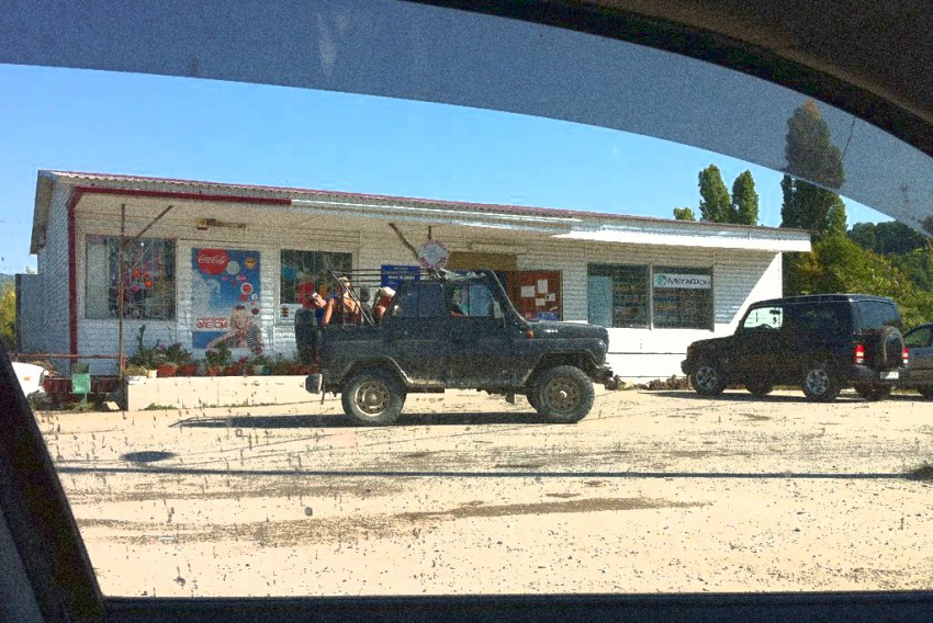 спускаемя к кафе и стоянке уазеров что катают «приезжих» в пылюке…