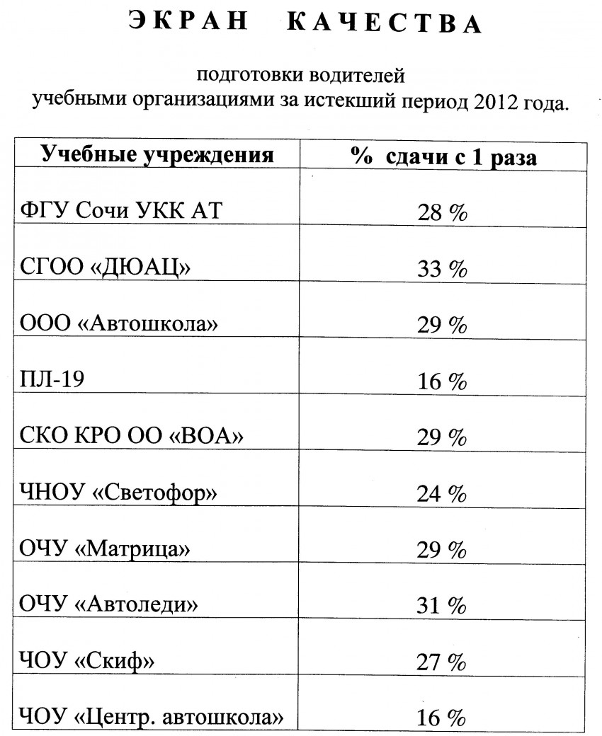 2. Одни из худших показателей по сдаче экзаменов в ГАИ именно у этой автошколы