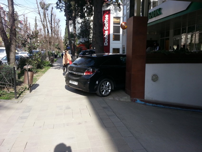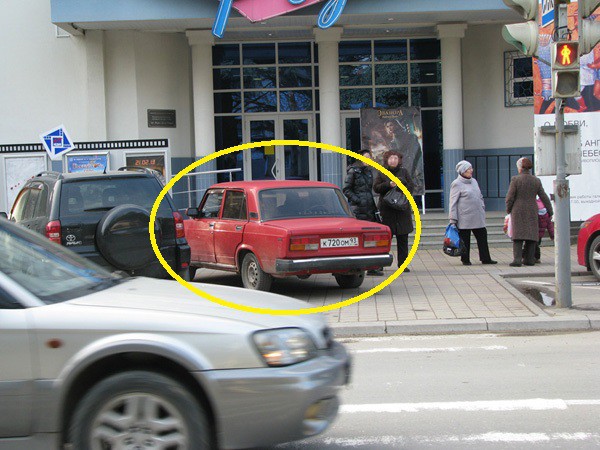 На днях стояла возле светофора (кинотеатр «Родина»), на тротуар нагло заехал красный автомобиль, не просигналив заранее. Вышли молодые люди и пошли в сторону по своим делам…