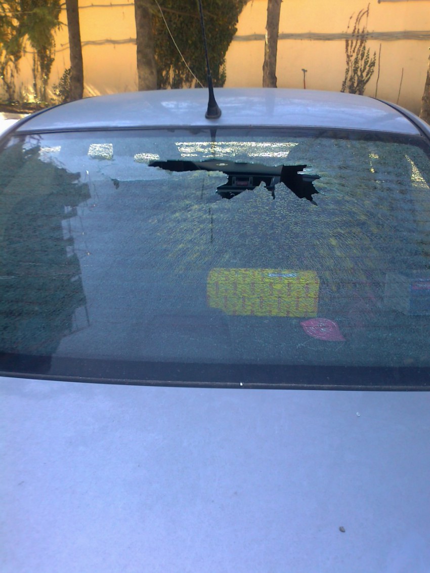 Как выяснилось на крыше строящегося на территории парковки ТЦ велись работы и эти «супер строители» уронили камень, который угодил на заднее стекло моего автомобиля.