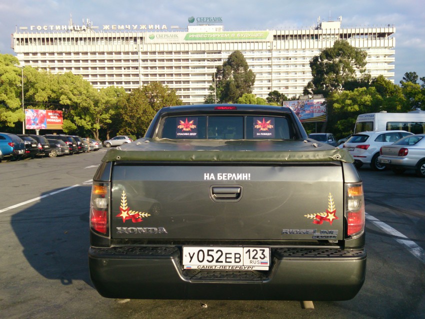 Причем здесь производитль авто? Это не имеет отношению к псевдопатриотизму изображенному на снимках и тому что происходит в головах. Не надо цепляться ко всякой ерунде, которая никаким образом не относится к тому что день победы превратился в фарс и позерство — «Посмотрите, я патриотичней чем вы все — у меня ленточек больше! А вот и никуа — Я патриотичнее у меня на хаммере „НА БЕРЛИН!“