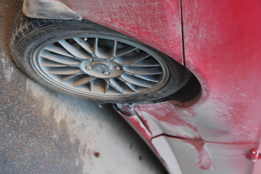 Кстати красному хендаю по делам досталось, на дороге олень оленем.