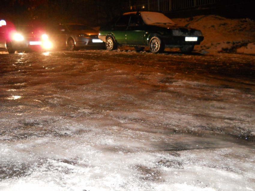 Это хорошо что народ догадался на Ясногорской машины не парковать. Там в принципе проблема ещё в том что спуск по сути бетонный, асфальт только верхний небольшой слой, вот он и заледеневает.