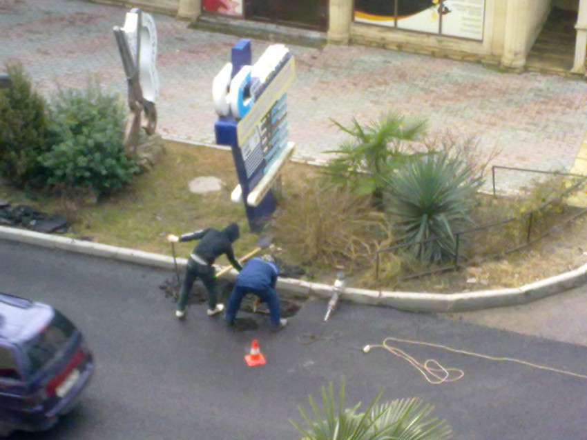 И действительно — в Хосте на протяжении всей улицы 50 лет СССР укладывают новый асфальт.
