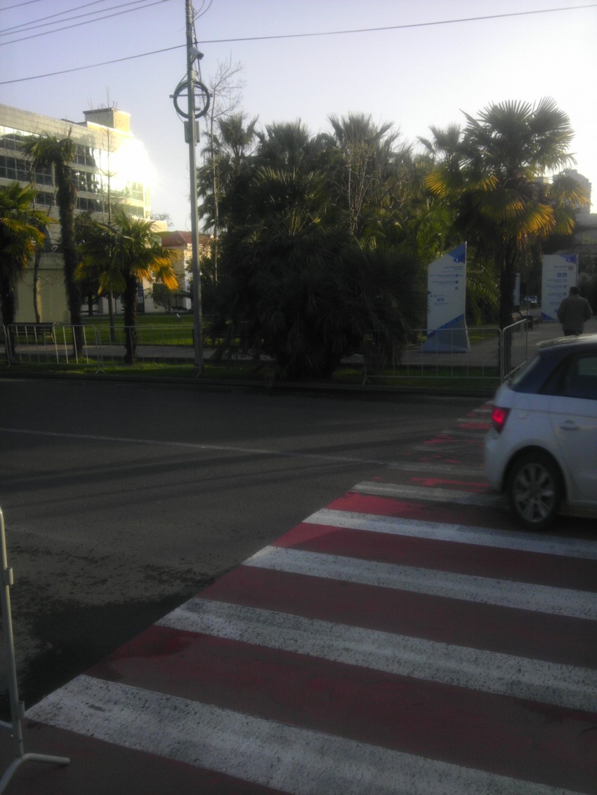 На переходе к морвокзалу, выход к фонтану, растет прекрасная пальма. НО, данное дерево так же закрывает обзор и пешеходам и водителям. Что бы перейти дорогу, нужно на метр выйти на проезжую часть. И пешеходов не видно, пока на зебру не наедешь.