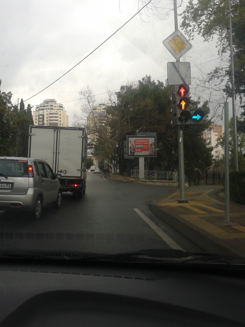 Как может человек желающий соблюдать правила нормально чувствовать себя на этом светофоре, под сигналами стоящих сзади. Слева меня объезжали те, кому, как и мне — прямо. До каких пор безнаказанно будут над нами экспериментировать те, кто такое сочинил?