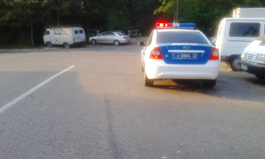автомобиль сотрудника ДПС (отдадим должное, сотрудник ДПС включил проблесковые маячки)