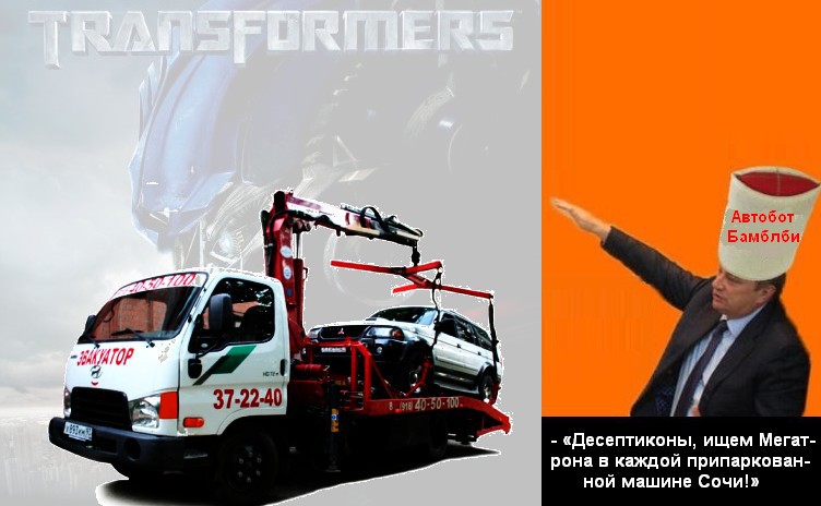 Короткий топик-предупреждение. В Красной Поляне активизировалась новая база Десептиконов. Для создания новой армии и покорения мира им нужны ваши автомобили и Энергон. Небрежно оставленные на проезжей части под знаком «Остановка запрещена» автомобили забирают на базу и перековывают в солдатов новой армии.