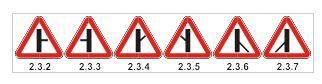 Нет такого знака. 2.3.2 — 2.3.7 «Примыкание второстепенной дороги» и т.к. перекрёсток получается из серии «Т» образных, то под каким бы углом она не примыкала выезд на главную будет всегда иметь два направления — направо или налево.