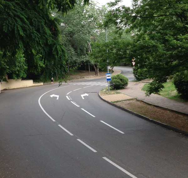 Еще один пример. Выезд с Абрикосовой на ул. Макаренко. На момент, когда я сдавала, не было не то чтобы разделения на полосы, а вообще никакой разметки. Оштрафовали за то, что не показала, что перестраиваюсь в левую полосу (которой не было даже видно). Сейчас все проще, нарисовали разметку.