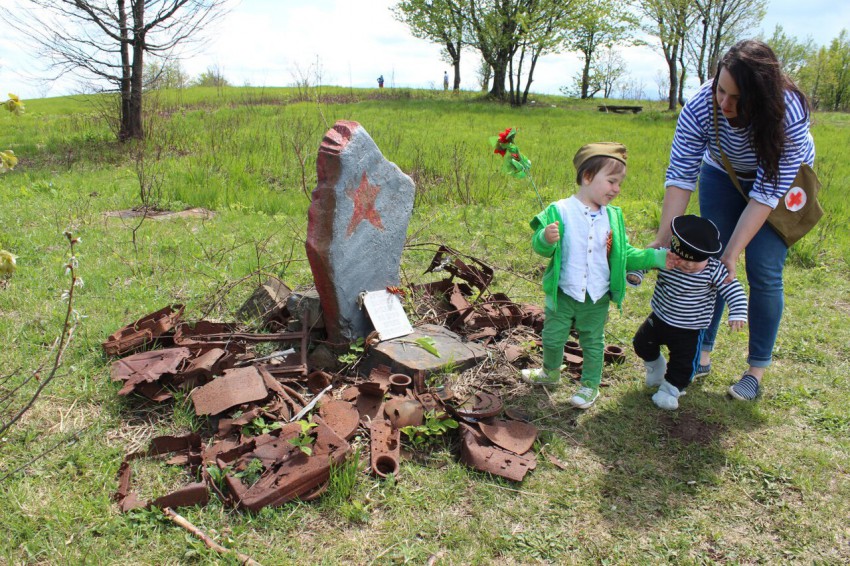 По дороге останавливаемся у каждего обелиска, а их очень много… и у каждого из них музейные экспонаты… осколки мин, снарядов и прочего военного железа…