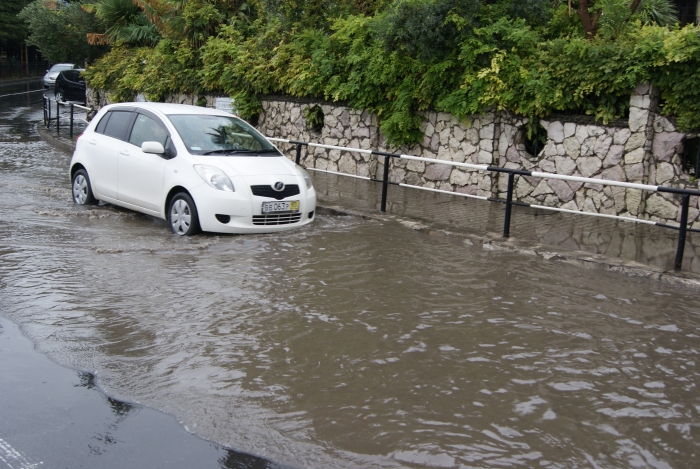После последнего дождя, вода долго не уходила с ул. Черноморской, и все проезжающие машины, резко тормозили перед входом в кафе «Лентяй», начинали перестраиваться в правый ряд( кто ехал по левому ), ткм самым создавали аварийную ситуацию, а с учетом того, что в этом месте машины летят, как самолеты, то аварийность увеличивалась в геометрической прогрессии.
