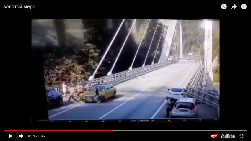 Около 16:00 11 сентября по дороге на Красную Поляну, на выезде из тоннеля перед вантовым мостом произошло дорожно-транспортное происшествие со смертельным исходом: автомобиль Mercedes золотого цвета, принадлежащий сочинскому казино, сбил девушку.