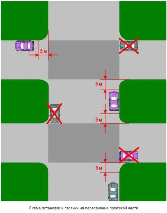 на пересечении проезжих частей и ближе 5 м от края пересекаемой проезжей части...»