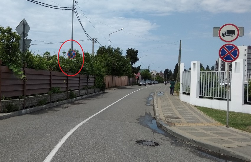Подготовка очередного обращения к властям города вынудила меня посетить улицы совхоза «Россия». Сложилось впечатление, что в некоторых местах установлены дорожные знаки, вызывающие улыбку у людей. Хотелось бы знать, установка такого несочетаемого сочетания знаков сделана просто для юмора, или люди, прикрутившие всё это и дающие задание на установку, совсем не советуются с головой?