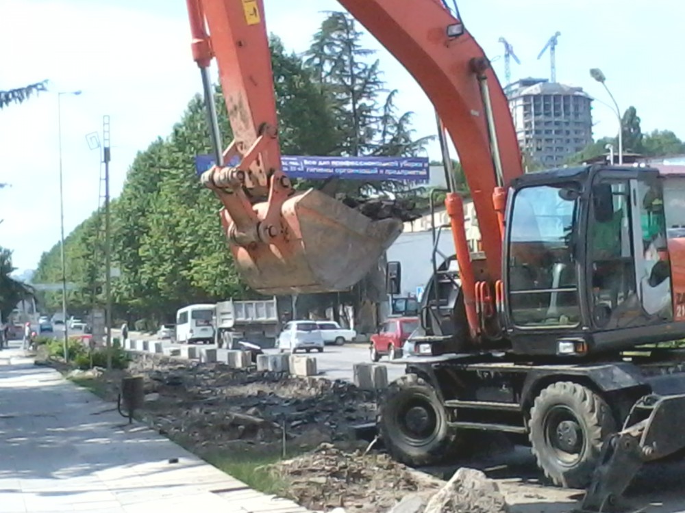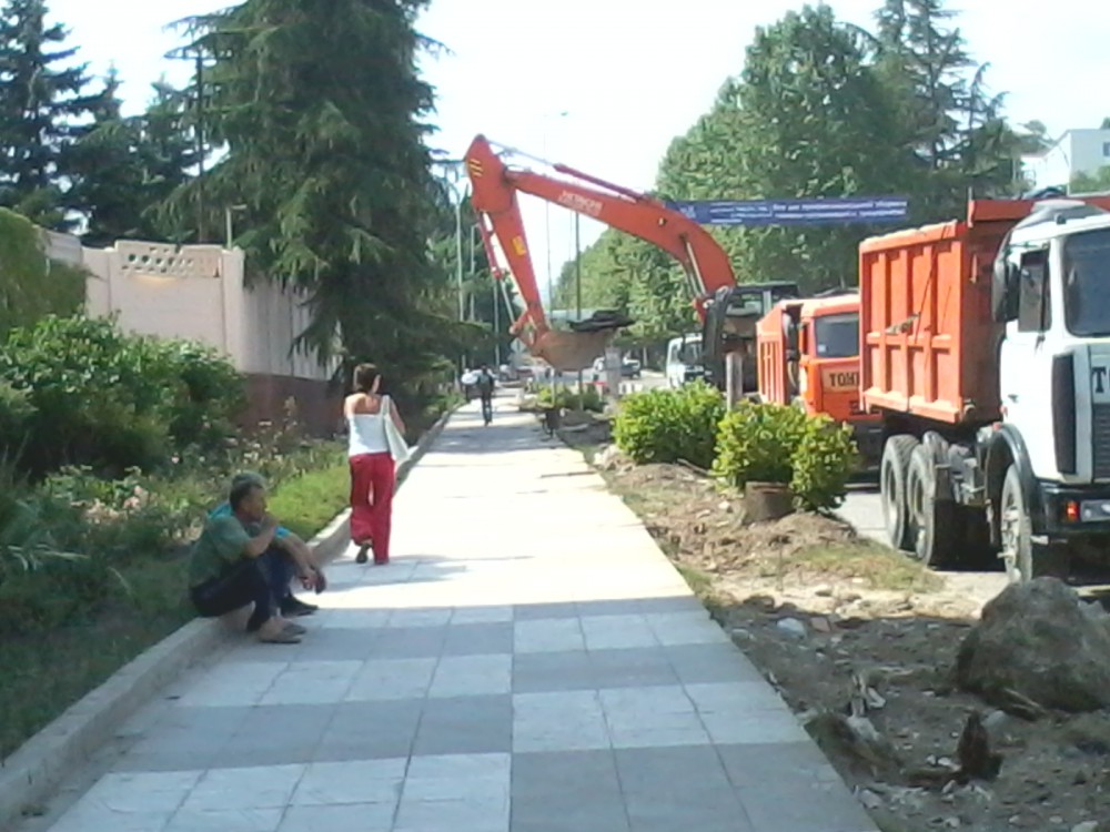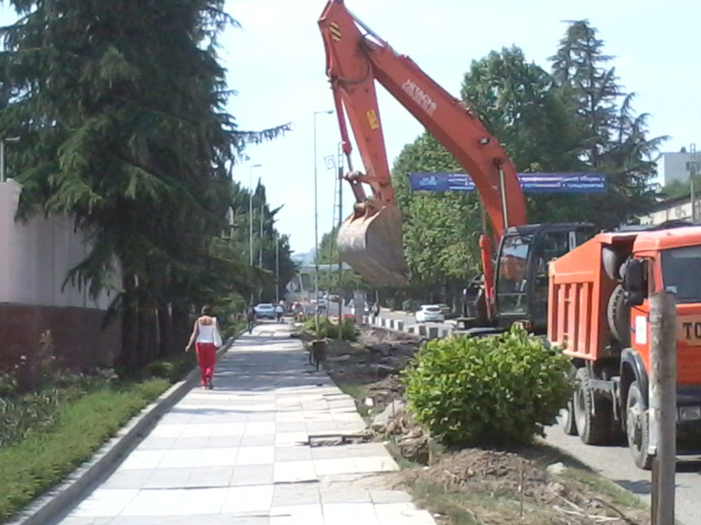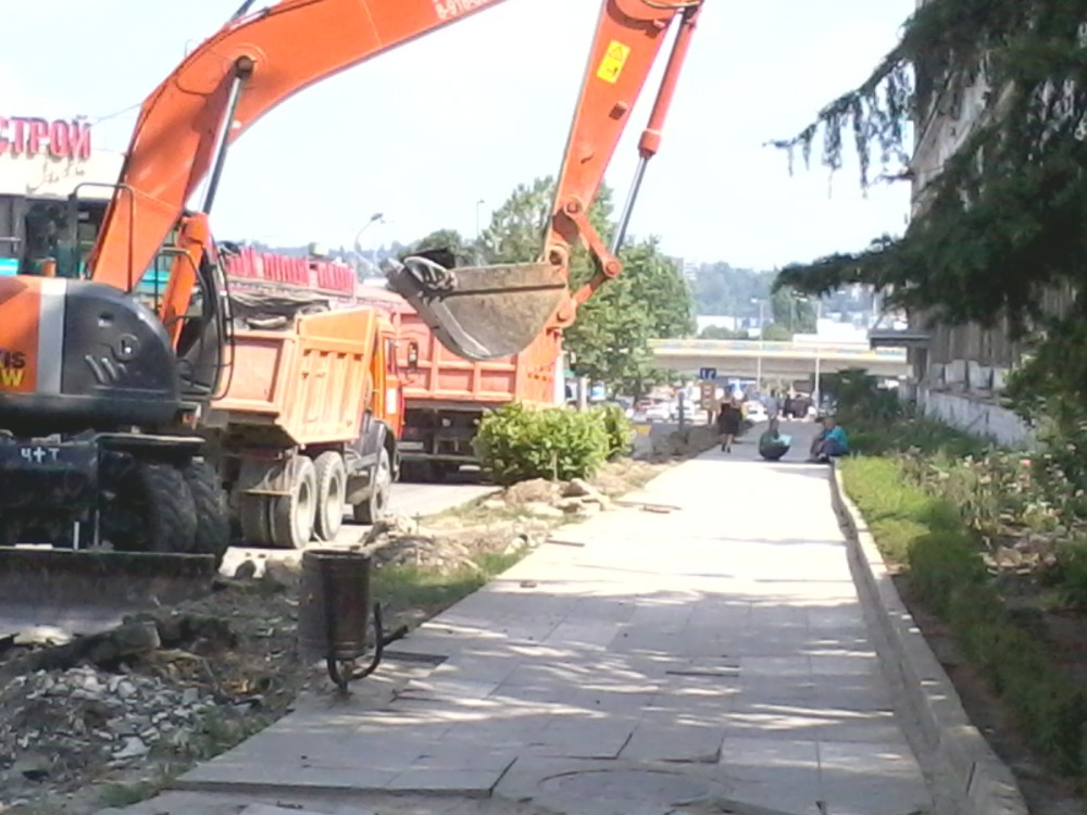 Экскаватор снимает дорожное покрытие на Донской в районе мясо комбината, причем задевает ковшом пешеходную зону, где ходят пешеходы. Место работ не огорожено. Ну ни бред ли?