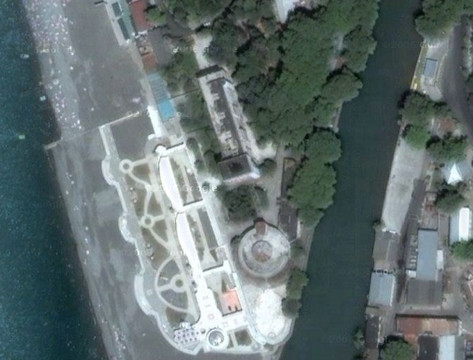 Язва города с конца восьмидесятых. Столичные спецалисты не учли климатические особенности района (ущелье, река). Санаторий «Новая Мацеста» уничтожил смерч. Первый сигнал о том, что где попало в Сочи строить нельзя. 2010 — полуразрушенное здание.