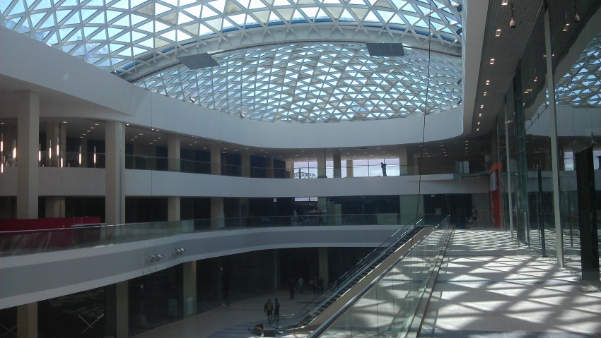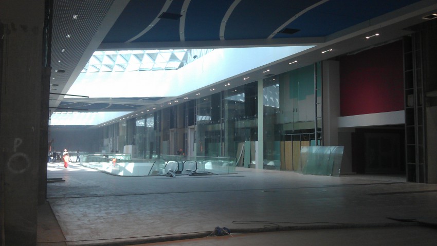 Сегодня довелось побывать в этом «чудном» заведении. Предполагаю открытие никак не произойдет к 15 октября, много гастарбайтеров, пыли и мусора. На задней стороне, где должны подъезжать фуры, вообще нелегко пройти пешком. Территория, конечно, большая, но вопрос — когда он откроется? Из всех реклам уже установленных, я увидел только три полноценные вывески и один баннер, причем, интересно так напечатанный со словами, «Скоро — открытие». Эскалаторы лежат в самом холле, помещения закончены максимум на 40 %, а так, судите сами: