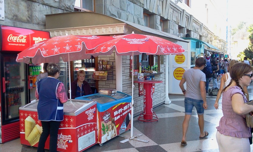 зы. а на ларьке на второй фотке, который с надписью «Курортное бюро», в правом нижнем углу на стороне, обращенной к зданию вогзала, имеется изображение Любимой Девушки Мацесты:) Как вижу Ее прогуливаясь в ожидании поезда — так сразу теплее на душе становится, как бы благославляет в дальний путь…