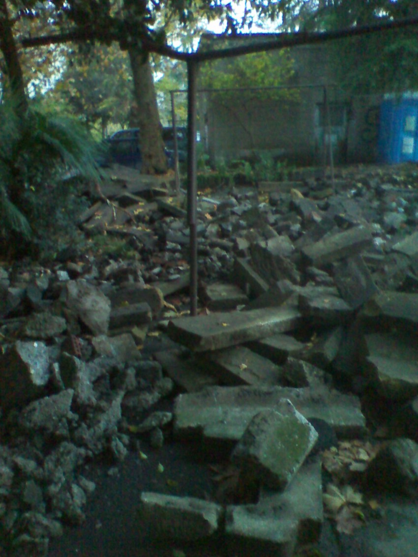 а так фактически выглядят бывшие клумбы и бельевые площадки от-благоустроенные строительным мусором: