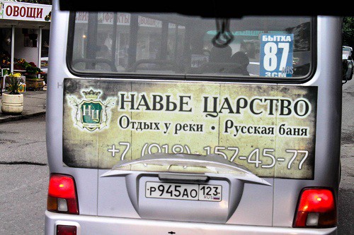 Благородные доны, не знаю как вам, но у меня, то что написано на некоторых автобусах в качестве рекламы вызывает весьма хреновые ассоциации. Как вам это нравится?!