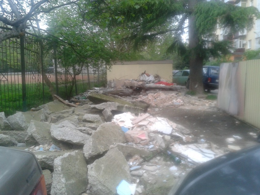 То ли товарисчам надоело сносить гаражи, то ли пилить уже нечего, но сейчас в нашем дворе куча строительного мусора и бедный гараж, устоявший против «варваров»